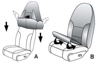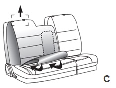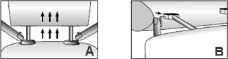 C. Hvis bilens hodestøtter har både klips og knapp, trykker du på dem samtidig og løfter hodestøtten opp. I noen tilfeller er det greit å være to personer.